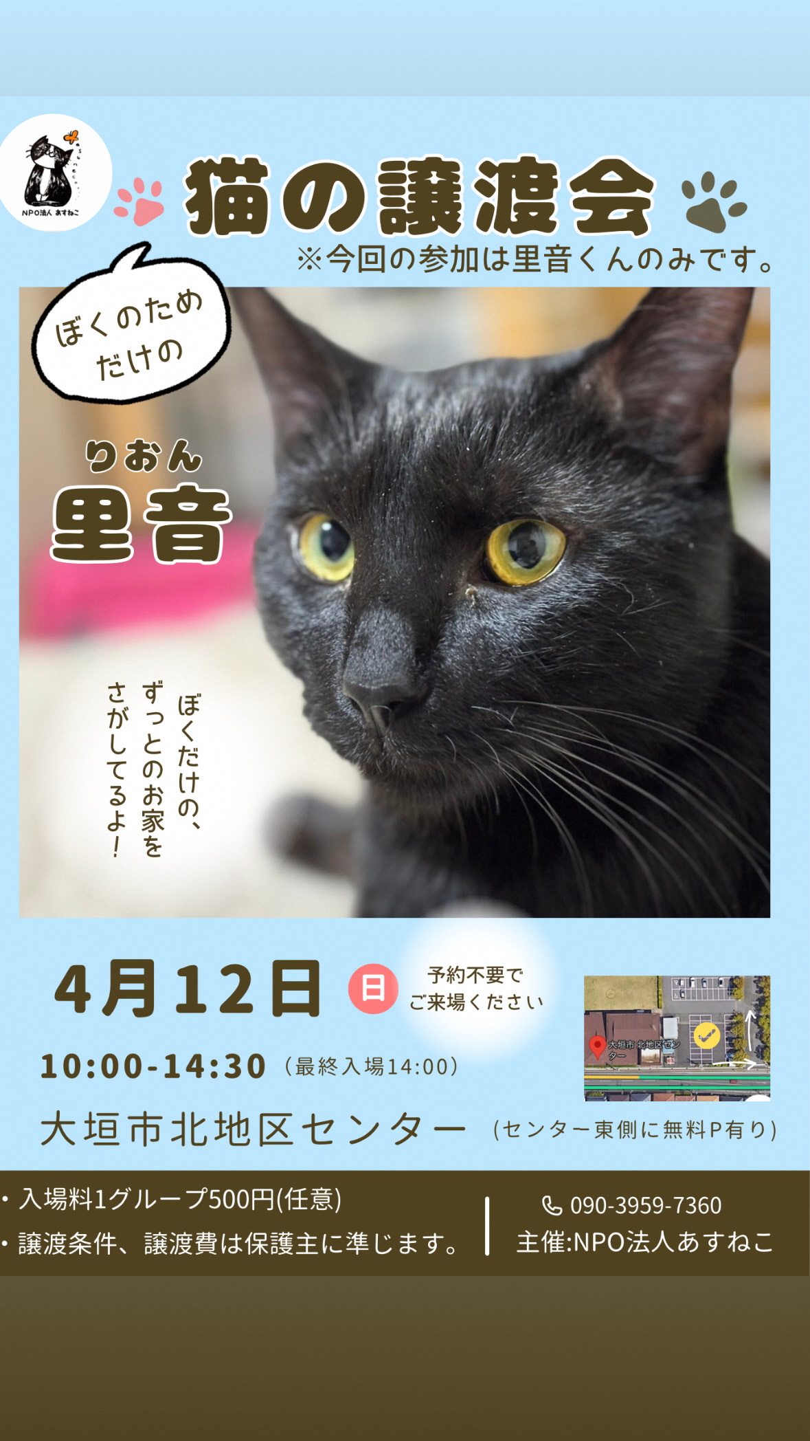 | 猫 | 4月12日日曜日 10時から14時30分 |