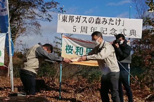 「東邦ガスの森 みたけ」 感謝状贈呈式と除伐作業