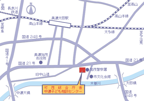 ■中濃子ども相談センターは、JR美濃太田駅から南方向にあります