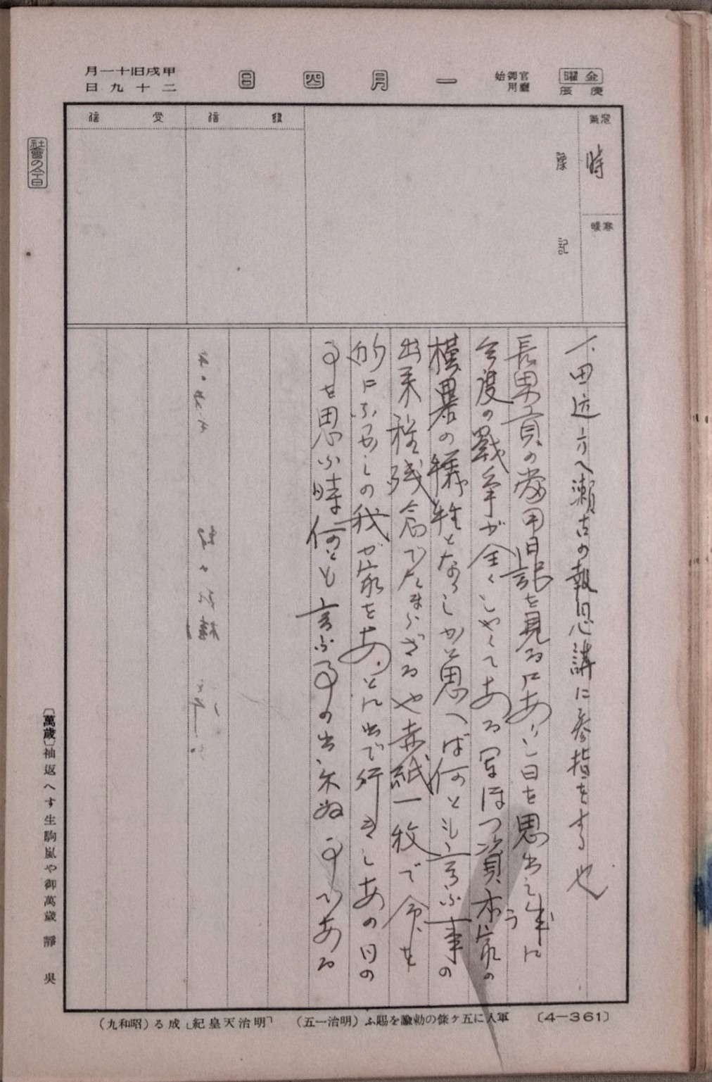 戦死した長男・貢が昭和10年に書いた日記の空欄に、昭和23年になって書き継いでいる。