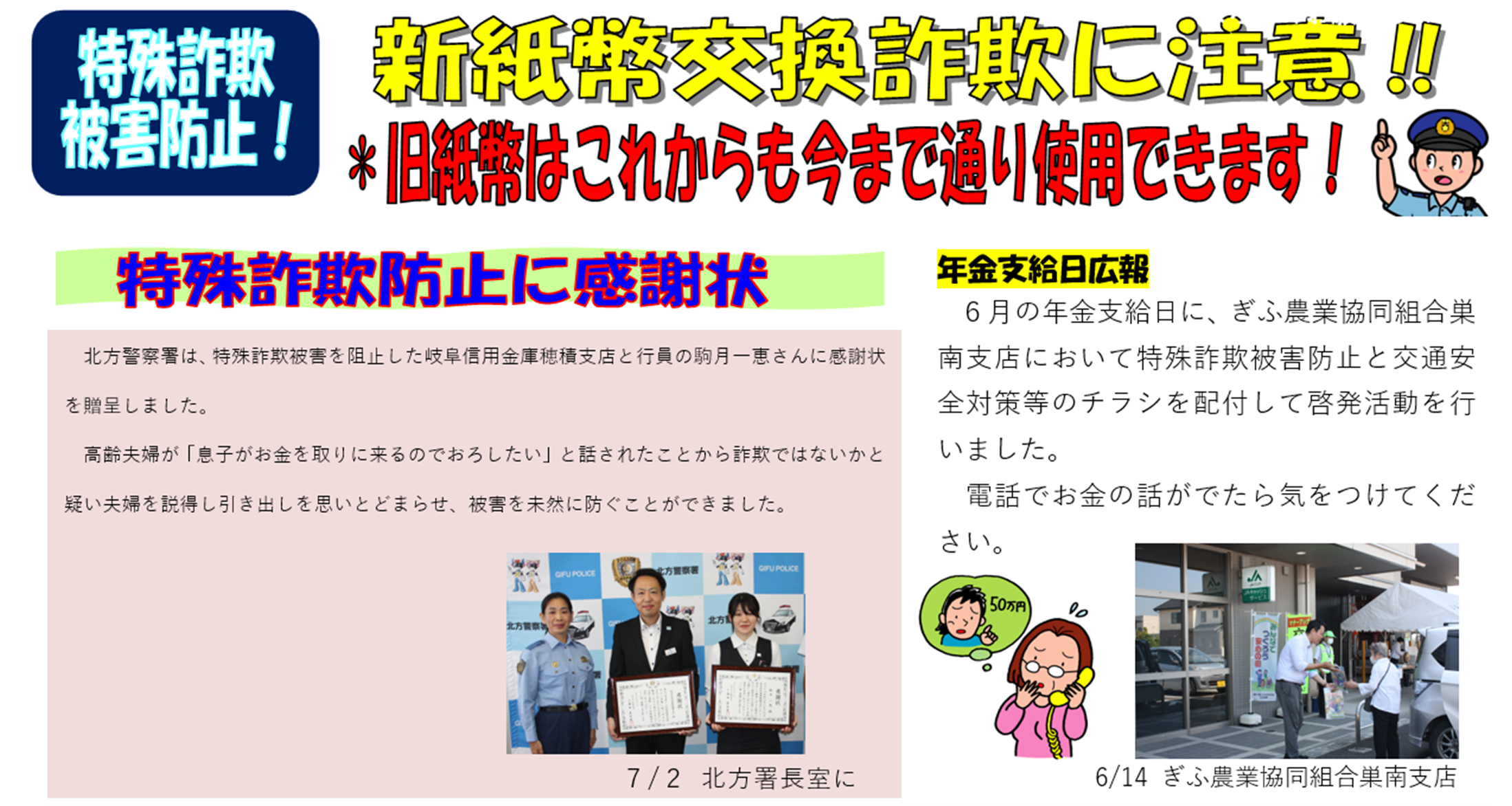 7月3日から新紙幣が発行され、「旧紙幣が使えなくなる」と言って現金をだまし取る詐欺が発生する恐れがあります。