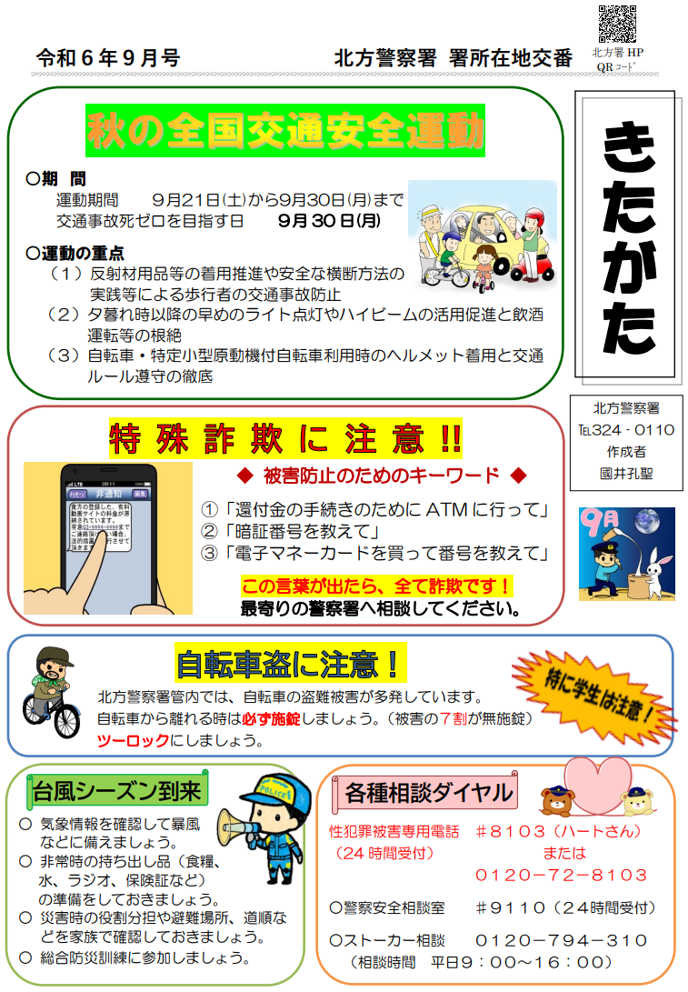 【北方警察署】署所在地交番 ミニ広報誌 9月号発行