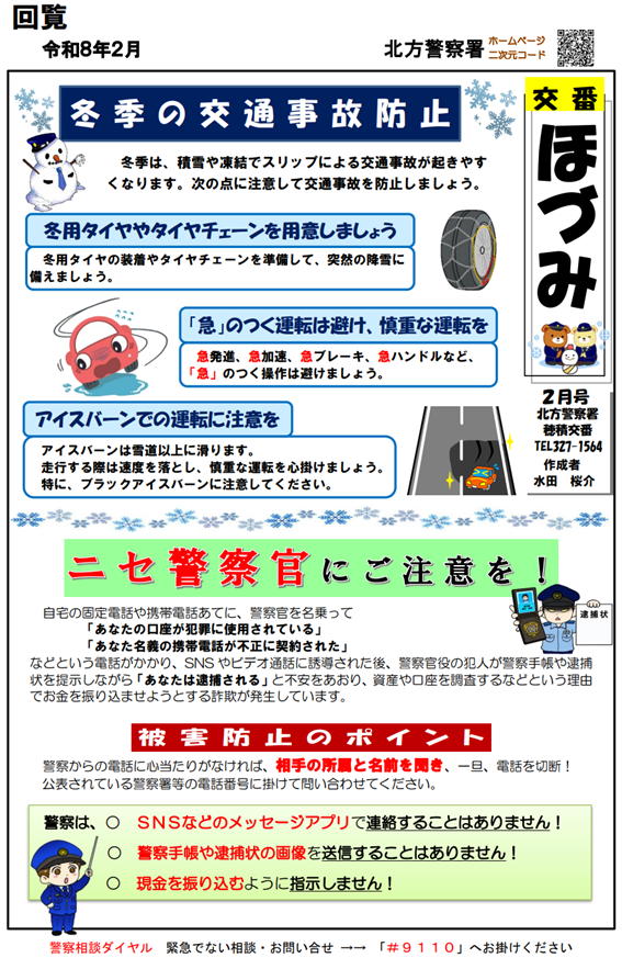 【北方警察署】穂積交番 ミニ広報紙 令和8年2月号発行