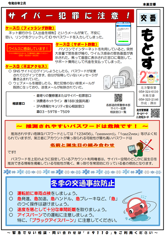 【北方警察署】本巣交番 ミニ広報紙 令和8年2月号発行