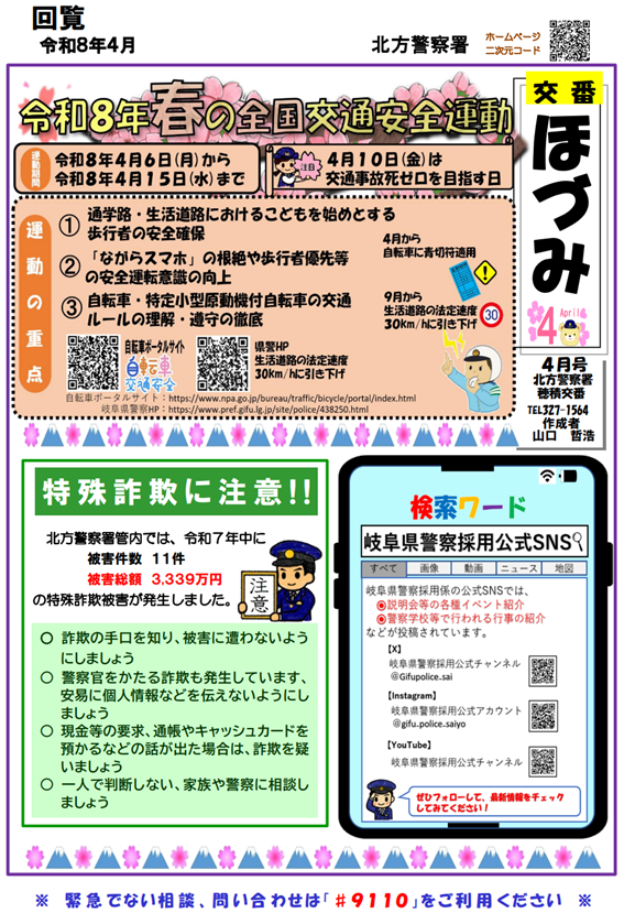 【北方警察署】穂積交番 ミニ広報紙 令和8年4月号発行