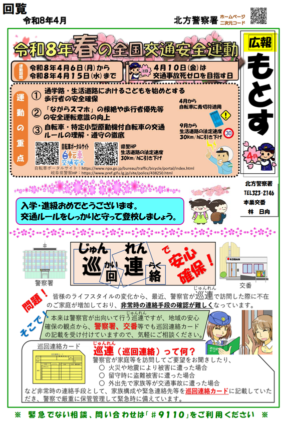 【北方警察署】本巣交番 ミニ広報紙 令和8年4月号発行