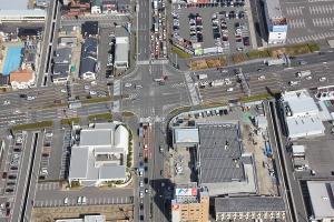 国道と主要地方道・県道が交差する交差点で、終日交通量が多く、交通混雑に起因して各種事故が多発した。